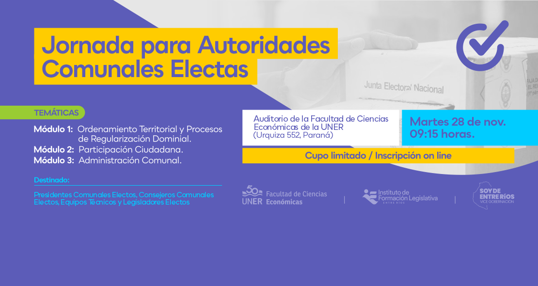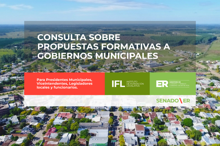El Instituto de Formación Legislativa de la Vicegobernación, junto a la Secretaria de Gobiernos Locales, dependiente del Ministerio de Gobierno y Trabajo de Entre Ríos, abren una consulta sobre temáticas de interés para futuras propuestas formativas para los gobiernos municipales de la provincia. Está dirigida a presidentes municipales, viceintendentes, legisladores locales y funcionarios.