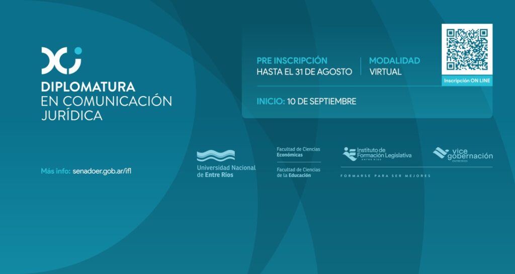 La Diplomatura en Comunicación Jurídica es una propuesta formativa de las Facultades de Ciencias de la Educación y de Ciencias Económicas de la Universidad Nacional de Entre Ríos (UNER) en convenio con el Instituto de Formación Legislativa de la Vicegobernación de Entre Ríos. Es gratuita, con cupo limitado y modalidad de cursado virtual.